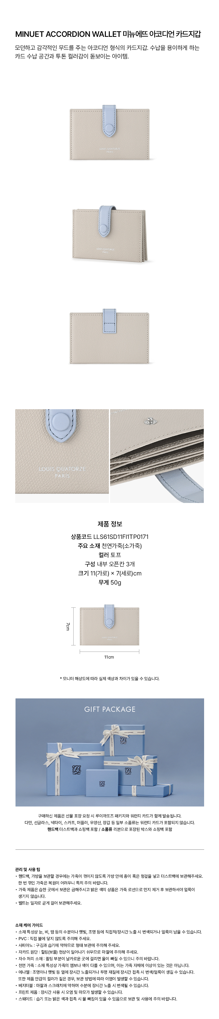 • 취급시 주의사항 : 루이까또즈 상품은 가죽 가공을 최소화 처리하여 제작되었습니다. 사용 및 보관 시 스크래치 및 마찰에 주의해 주세요. 상품은 절대 세탁하지 마시고 꼭 전문 업체에 의뢰해 주세요. 각 가죽의 가공 처리에 따른 주의사항이 모두 다르므로 자세한 사항은 상세페이지를 확인해 주세요.
