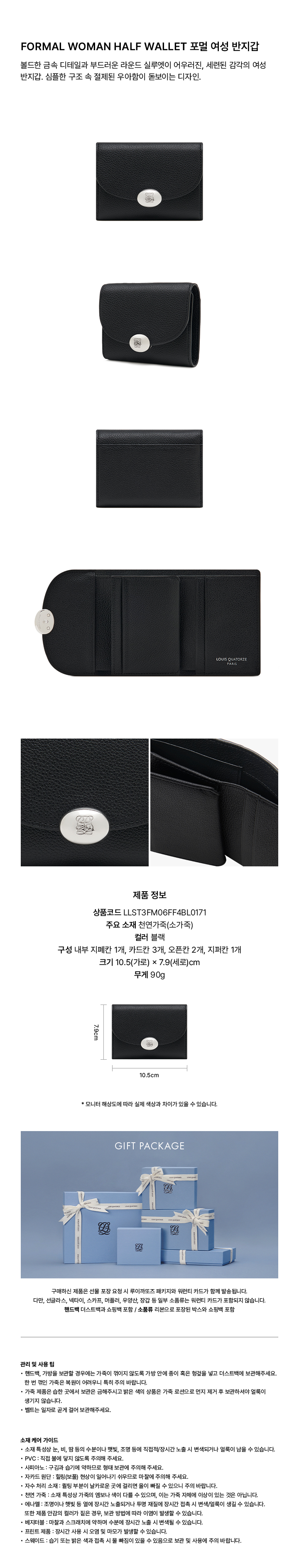 • 취급시 주의사항 : 루이까또즈 상품은 가죽 가공을 최소화 처리하여 제작되었습니다. 사용 및 보관 시 스크래치 및 마찰에 주의해 주세요. 상품은 절대 세탁하지 마시고 꼭 전문 업체에 의뢰해 주세요. 각 가죽의 가공 처리에 따른 주의사항이 모두 다르므로 자세한 사항은 상세페이지를 참조해 주세요.